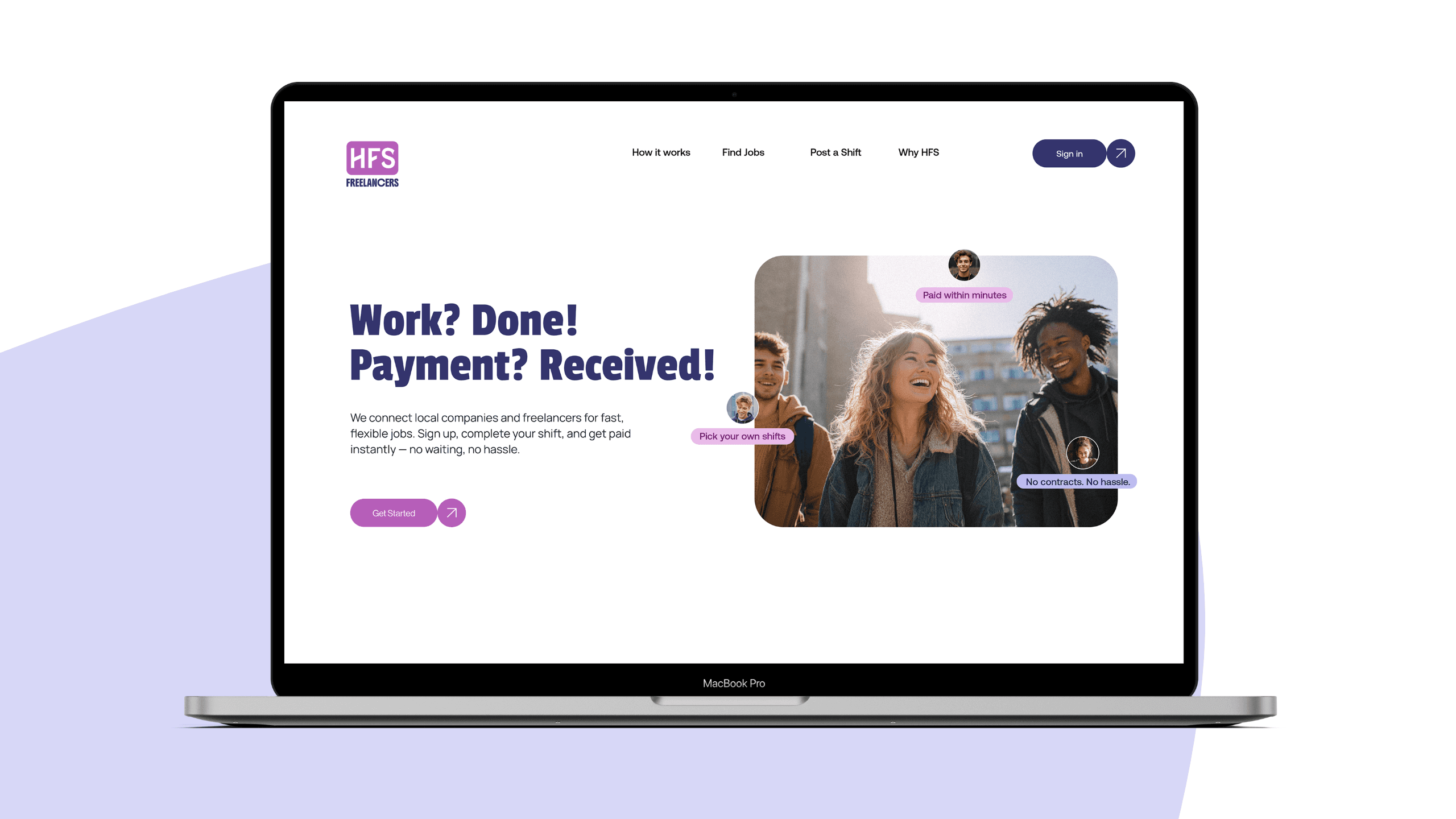 We worked with HFS to shape a bold and approachable brand presence for a platform built around speed, flexibility and instant payment.