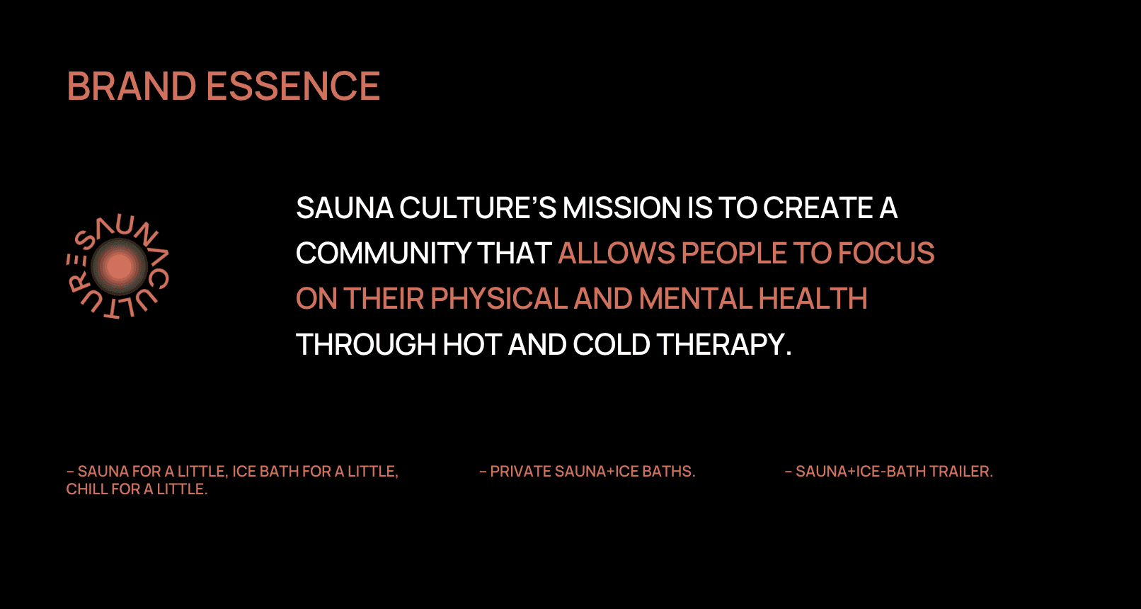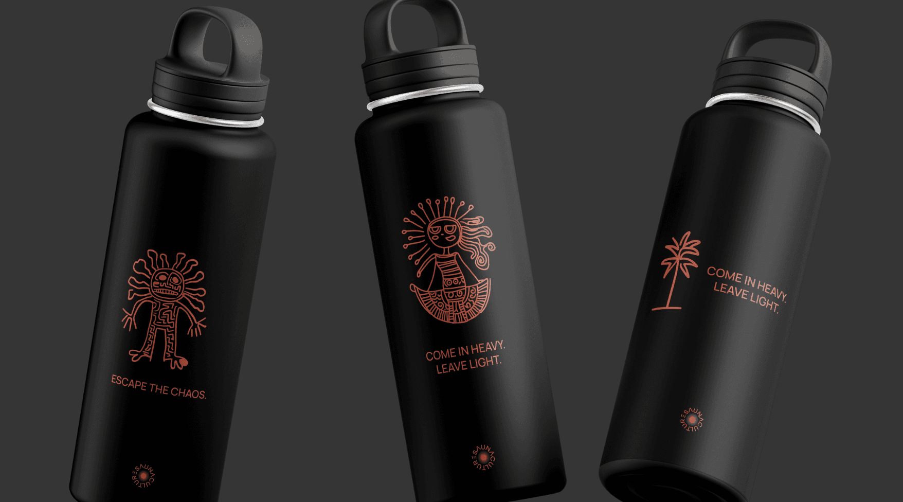 In the Sauna Culture collaboration, our mission was to design out a Scandinavian-inspired (notice the steaming Sauna Man, "hiisi", inspired by Finnish folklore) quirky wellness brand for a new franchise on the West Coast of the USA.